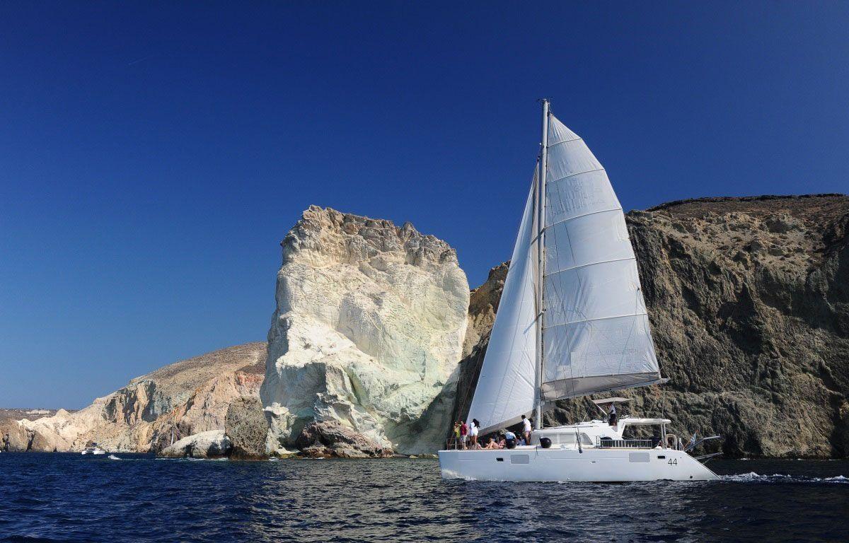 Private catamaran Santorini cruise that fits in your budget. We offer the best catamaran cruise price Starting 850 euros for up to 4 persons