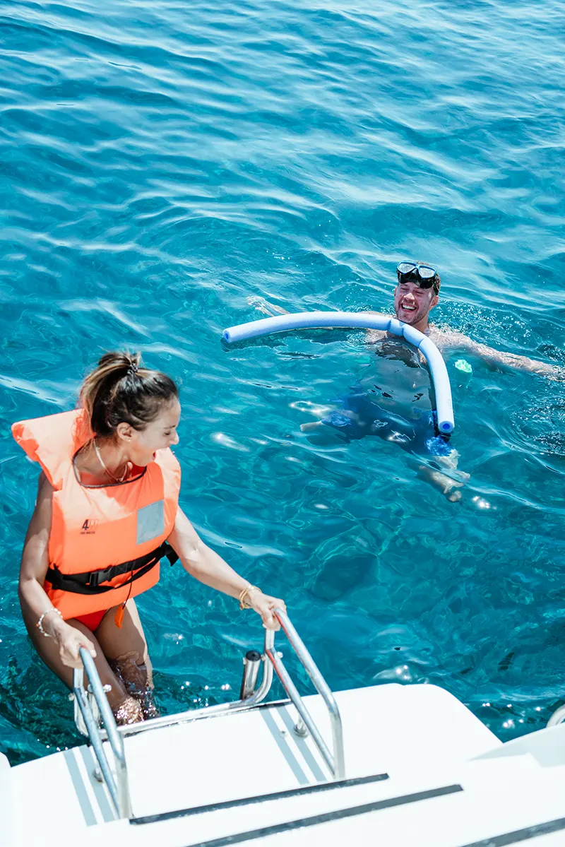 - Swimming & snorkeling stops at beautiful, secluded bays